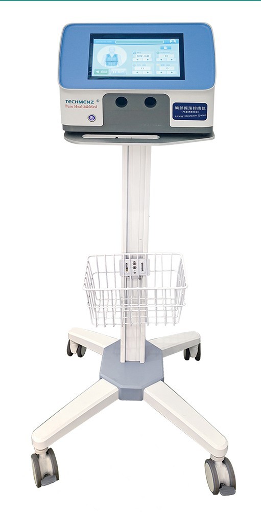 工作原理: 包括空气脉冲发生器 、充气背心 、束带 。采用高频胸壁震荡技术 , 主机快速的充气和放气 , 使背心( 和束带) 使患者的胸壁产生高频的振动 。从而使得粘稠的痰液松动 、脱落 、稀释 、 聚集 , 同时刺激气道壁的纤毛摆动, 将痰液转移至气管和口腔排出。